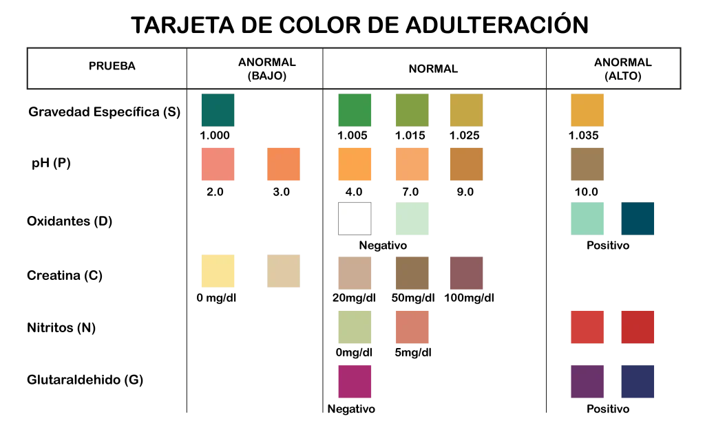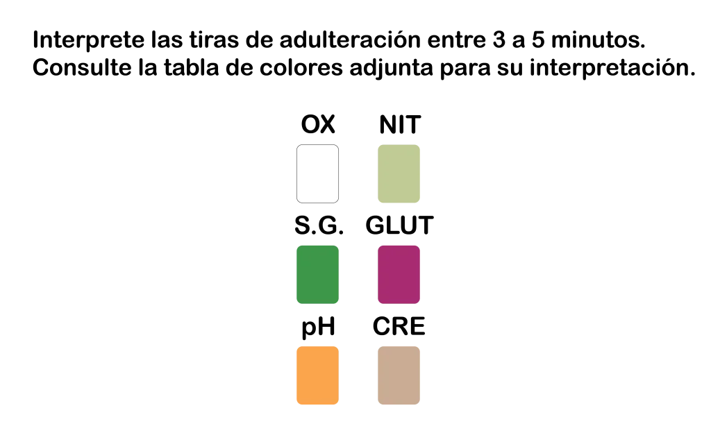 • Tiempo de lectura (tiras de adulteración): 3-5 minutos